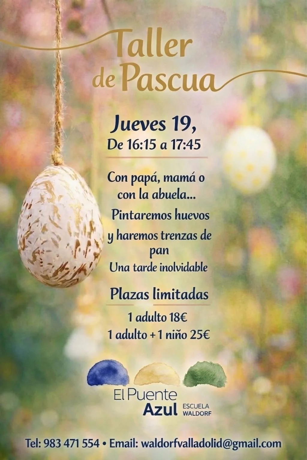 Los encuentros serán un fin de semana al mes (sábado y domingo). Desde Contacto te puedes inscribir y te podemos aclarar dudas o nos puedes llamar al teléfono 696545362 o escribir a puenteazul@waldorfvalladolid.es